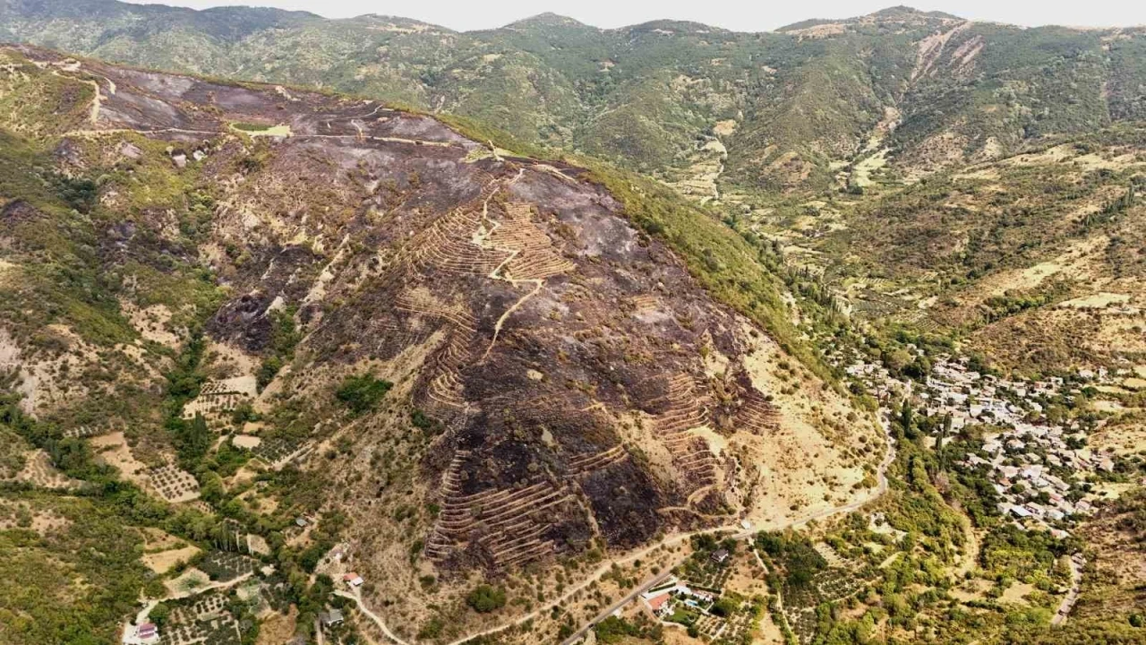 Havadan çekilen görüntülerde, yangının etkilediği geniş alanlar net şekilde gözlemlenirken, siyaha bürünmüş ağaçlar, küle dönmüş zemin ve dumanın izleri dikkat çekti. Yangının başladığı nokta ile yayıldığı güzergâh arasındaki geniş mesafe, havadan yapılan çekimlerde açıkça ortaya kondu.