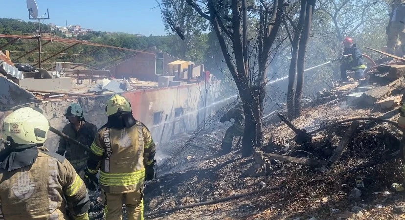 Ümraniye’de ağaçlık alanda çıkan yangın paniğe neden oldu. Yangın, kullanılmayan eşyaların bulunduğu metruk binaya da sıçradı.