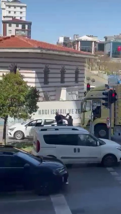 Ümraniye’de kamyon şoförü, trafikte yol verme meselesi yüzünden tartıştığı sürücüye çekiçle saldırdı. O anlar cep telefonu kamerasına yansıdı.