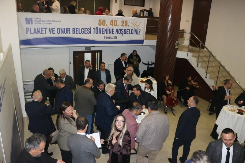 İnşaat Mühendisleri Odası (İMO) Gaziantep Şubesi tarafından geleneksel olarak düzenlenen törende, meslekte 25, 40, ve 50. yılını dolduran inşaat mühendislerine “Plaket ve Hizmet Belgesi” verildi.