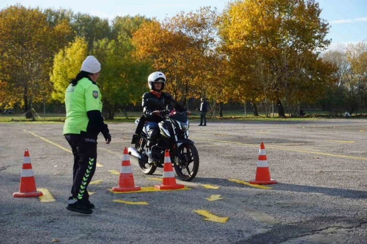 Edirne İl Emniyet Müdürlüğü’nün alanında uzman deneyimli polisleri, kent merkezi ve ilçelerde görevli polislere güvenli sürüş ve motosiklet eğitimi veriyor.