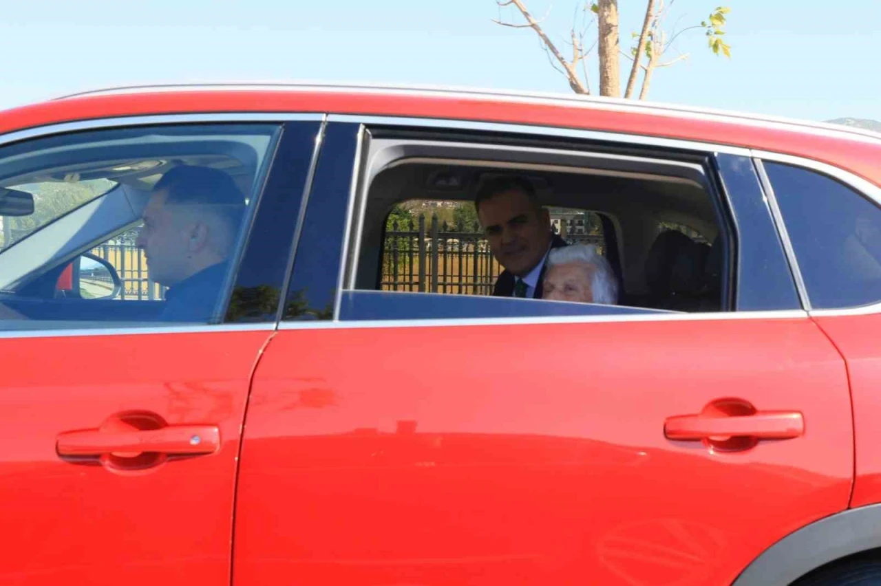 Muğla Valisi Dr. İdris Akbıyık, H. Nuri Öncüer Huzurevi sakini 91 yaşındaki Neylüfer Talay’ın yerli ve milli otomobil TOGG’u deneme isteğini geri çevirmeyerek anlamlı bir jest yaptı. 1 Ekim Dünya Yaşlılar Günü kutlamaları kapsamında Muğla’daki Abide-H. Nuri Öncüer Huzurevi Yaşlı Bakım ve Rehabilitasyon Merkezi’ni ziyaret eden Vali Dr. İdris Akbıyık, huzurevi sakinleriyle bir araya geldi. Ziyaret sırasında 91 yaşındaki Neylüfer Talay, Vali Akbıyık’a özel bir isteğini iletti. Talay, Türkiye’nin yerli ve milli otomobili TOGG’u yakından görmek ve deneyimlemek istediğini ifade etti. Bu samimi isteği memnuniyetle karşılayan Vali Akbıyık, Neylüfer Teyze’yi makam aracı olarak kullandığı TOGG’a davet etti. Vali Akbıyık ile birlikte makam aracına binen Neylüfer Talay, huzurevinden ayrılarak Cumhuriyet Meydanı’na kadar yolculuk yaptı. Yolculuğun ardından Muğla Valisi Dr. Akbıyık, Neylüfer Talay’ı yeniden makam aracıyla Huzurevi Yaşlı Bakım ve Rehabilitasyon Merkezi’ne bıraktırdı. Valinin jestiyle büyük mutluluk yaşayan 91 yaşındaki Talay, yerli otomobili deneyimleme fırsatı bulduğunu ifade ederek Akbıyık’a teşekkür etti.