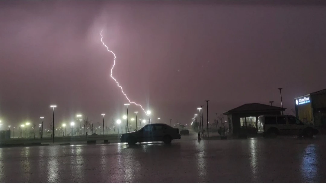 Meteoroloji Genel Müdürlüğü’nün yağış uyarılarının ardından Van’da akşam saatlerinde etkili olan yağmurla birlikte çakan şimşekler gecenin karanlığını aydınlattı. Gökyüzü, belirli aralıklarla çakan şimşekler ile aydınlandı. Kentte zaman zaman dolu da etkili olurken, yağış kısa bir süre sonra son buldu.