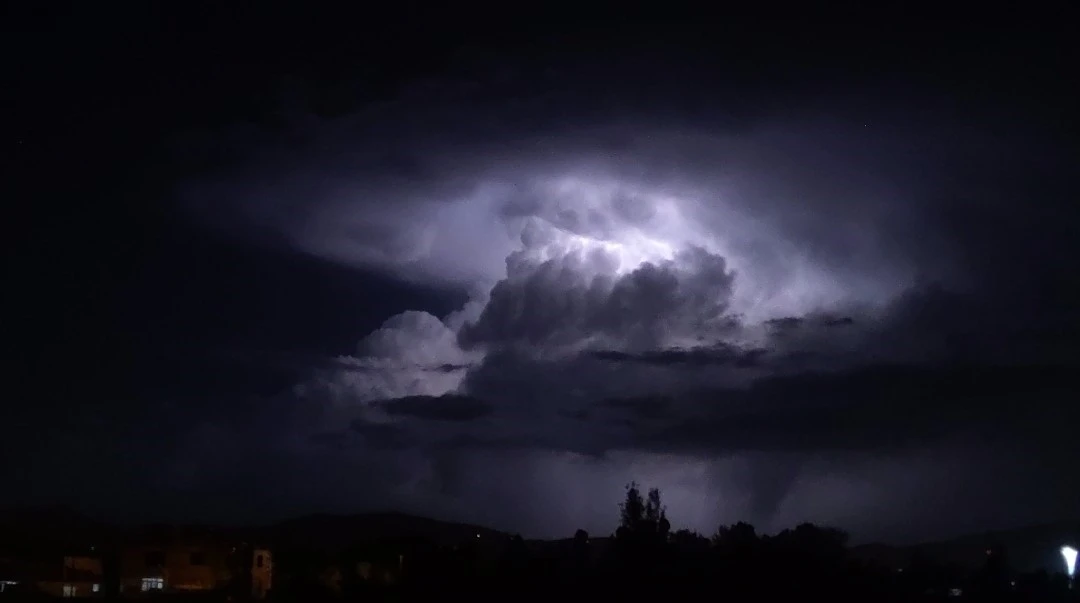 Van’ın Özalp ilçesine dün gece aralıklarla sağanak yağış etkili olurken, bulutlar arasından kendini gösteren şimşeklerin dansı görenleri hayran bıraktı.