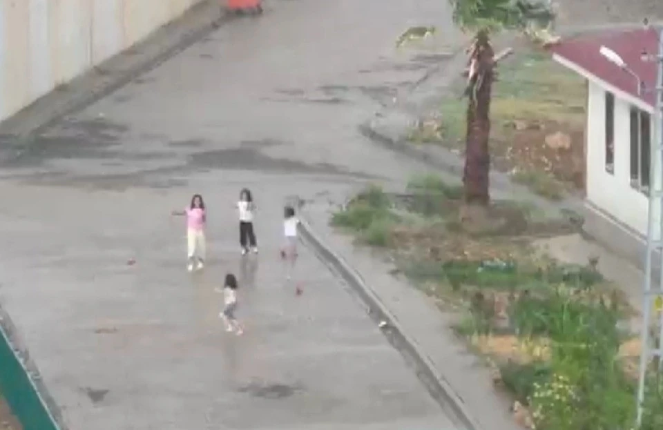 Kahramanmaraş’ın Onikişubat ilçesinde bazı bölgelerde yağan yağmur çocuklara bayram sevinci yaşattı.