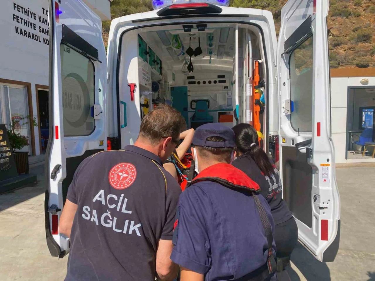 Fethiye ilçesi açıklarında seyreden ticari yatta yaralanan vatandaş için yardım çağrısı yapıldı. Yapılan yardım çağrısı üzerine yönlendirilen Sahil Güvenlik ekipleri yaralanan çocuğu bota alarak 112 ambulans ekiplerine teslim etti.