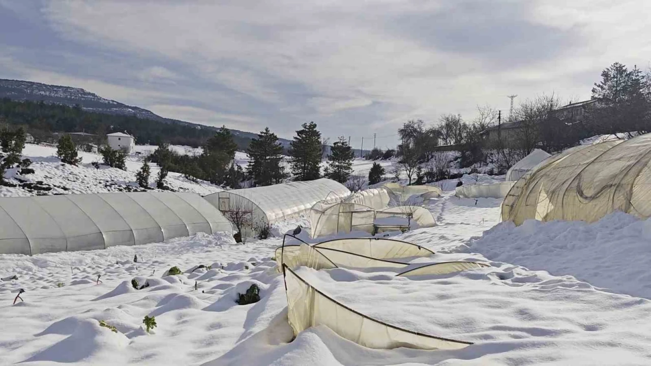 Karabük’ün Safranbolu ilçesinde etkili olan yoğun kar yağışı, seralarda büyük zarara yol açtı.