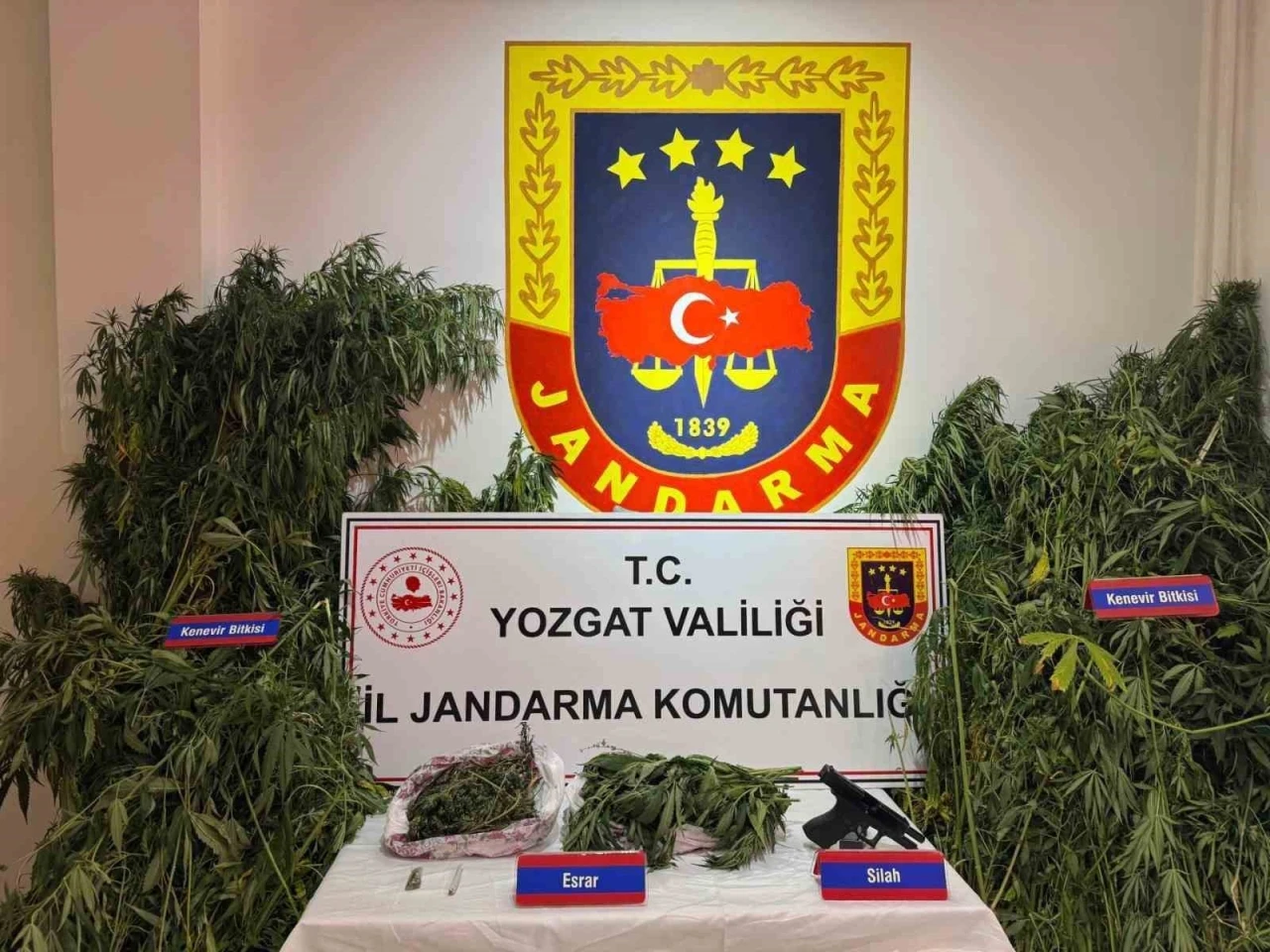Yozgat’ta yapılan uyuşturucu operasyonunda kenevir bitkisi ve tabanca yakalandı.
