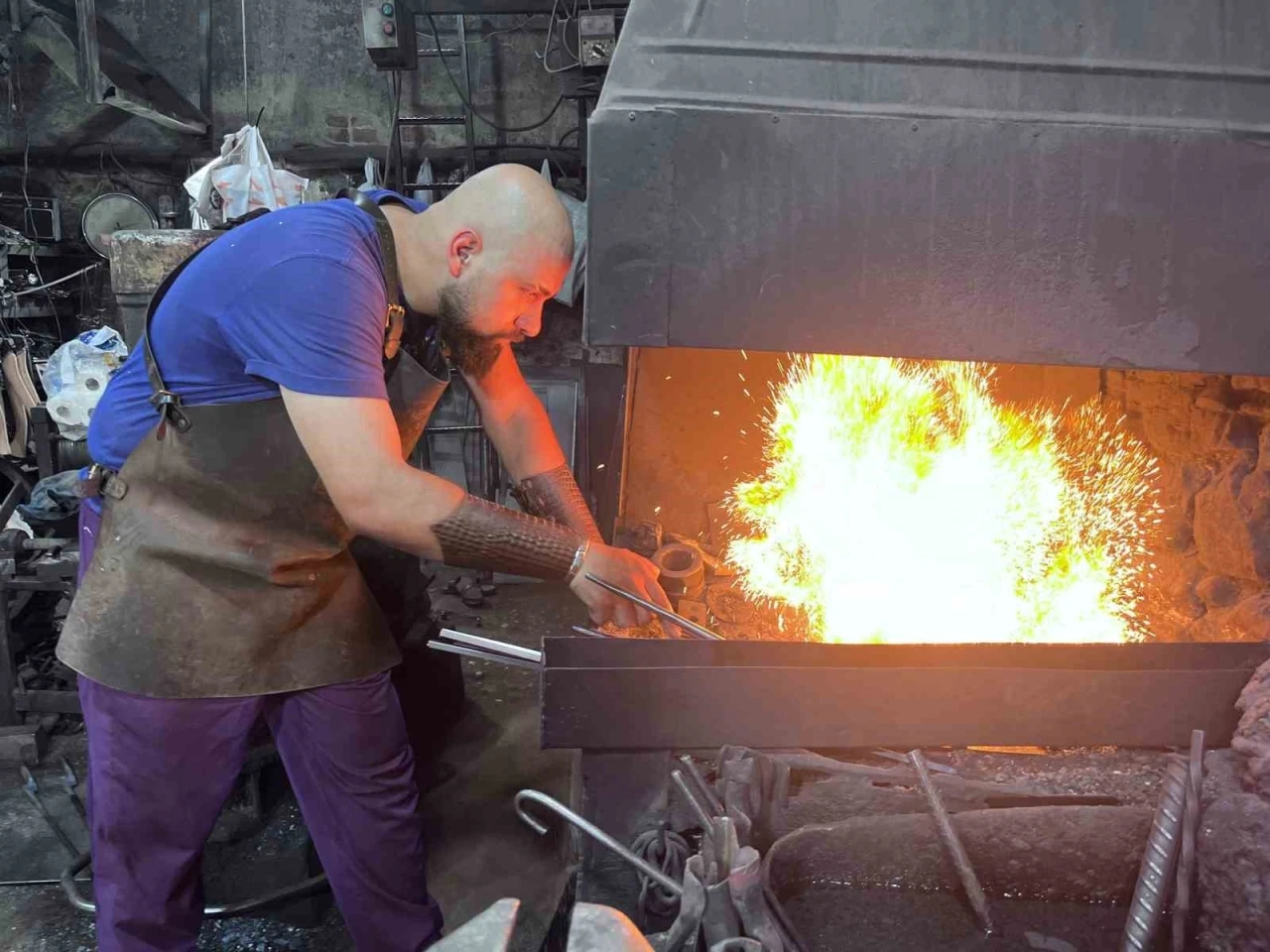 İzmir’de hava sıcaklıkları 40 dereceye dayandı. Kent genelinde etkisini artıran aşırı sıcaklar günlük yaşamı zorlaştırırken, özellikle güneş altında ve yüksek ısıya maruz kalan meslek grupları adeta ateşle mücadele ediyor. Demirci, fırıncı ve dökümcü gibi yüksek ısıya maruz kalan meslek gruplarında görev yapan işçiler, hem havanın hem de çalıştıkları ortamın sıcaklığıyla mücadele ediyor. Ateş başında saatlerce çalışan ustalar, serinlemek için sık sık yüzlerini yıkıyor, bol su tüketerek ayakta kalmaya çalışıyor. Ateşe en çok maruz kalan mesleklerden biri olan demircilikte yaklaşık 23 yıldır ustalık yapan Süleyman Akdemir ise zorlu mesleğini büyük bir özveriyle sürdürüyor. Yüksek sıcağa alıştığını belirten Akdemir, "Mesleğimi yaparken keyif aldığım için buradayım. Aksi halde bu sıcağa dayanmak gerçekten çok zor. Şu an bulunduğumuz ortam 65-70 derece civarında. Ancak işe ve sanata olan sevgimiz, bu zorlukların önüne geçiyor. Gençler belki ateşten, sıcaktan korkuyordur ya da klimalı ortamları tercih ediyordur. Çünkü bu iş kolay bir iş değil; sıcağı, kiri, tozu var. Bu mesleği ancak çok seven biri yapabilir. Biz de atalarımızdan gördüğümüz ve çok sevdiğimiz için buradayız. Yeni neslin tercih etmeme sebebi bu sıcaklık olabilir. Sürekli ateşle iç içeyiz, gelen parçalarla temas sonucu yanmalar da olabiliyor. Hava şu anda yaklaşık 40 derece, ocağın sıcaklığı ise bin 200 dereceye kadar çıkıyor. Bu sıcaklıktan etkileniyoruz ama işimizi büyük bir sevgiyle yapıyoruz" dedi. "Dışarısı bana cennet"