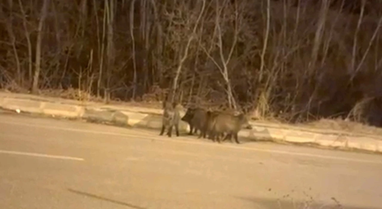 Hakkari’nin Yüksekova ilçesinde yiyecek bulmakta zorlanan domuz sürüleri, kış şartlarının ağırlaşmasıyla birlikte farklı noktalarda görüntülendi.