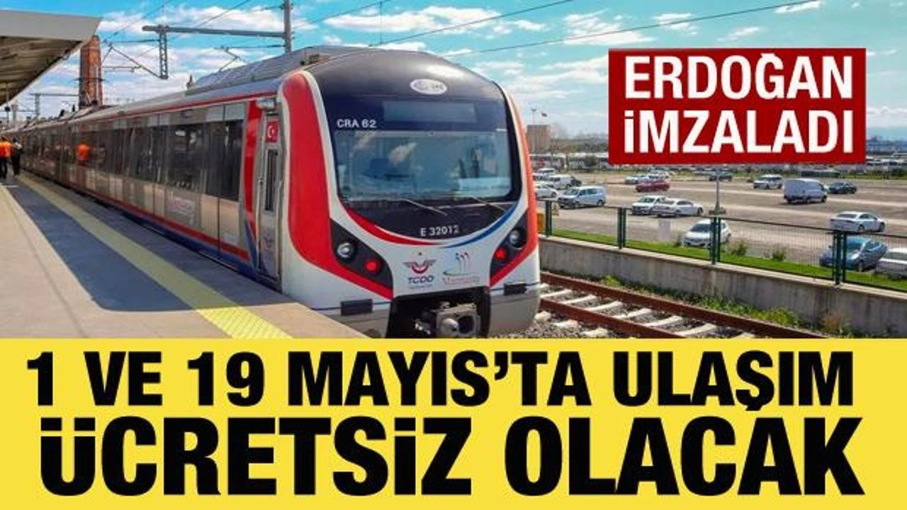 Resmi Gazete’de Cumhurbaşkanı Recep Tayyip Erdoğan’ın imzasıyla yayımlanan karara göre, 1 Mayıs Emek ve Dayanışma Günü ile Atatürk’ü Anma, 19 Mayıs Gençlik ve Spor Bayramı kapsamında Başkentray, Marmaray, İZBAN, Sirkeci-Kazlıçeşme Raylı Sistem Hattı ile Gayrettepe- İstanbul Havalimanı- Arnavutköy Metro Hattı seferlerinden yararlananlar, 4736 sayılı Kanunun 1’inci maddesinin birinci fıkrası kapsamında ücret ödemeyecek.