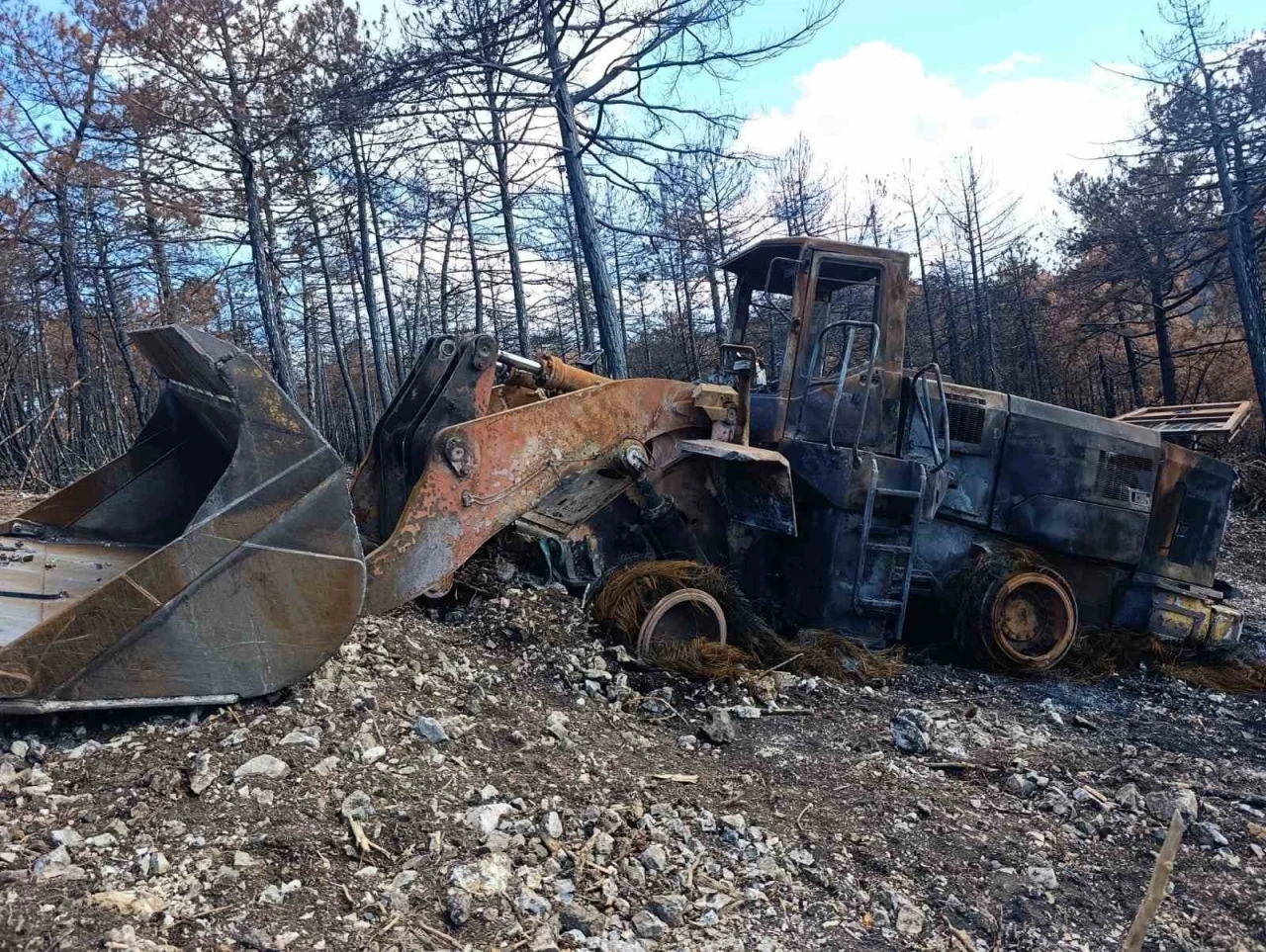 Eskişehir’de çıkan ve 10 kişinin şehit olduğu orman yangınlarında kül olan iş makinelerinden sonuncusu, ekskavatör ve dozerin çalışması sonucunda bulunduğu noktadan çekildi.