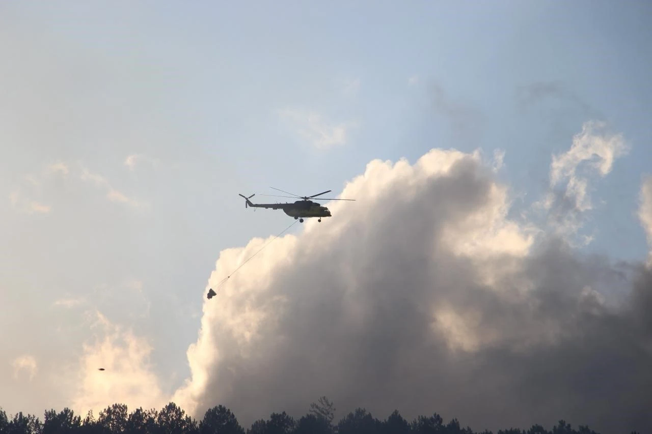 Bolu'nun mengen ilçesinde çıkan orman yangını 4. Saatine girerken, bölgedeki durum drone ile havadan görüntülendi. Yangının yola yakın olması sebebiyle trafik geçişi kontrollü olarak sağlanıyor.
