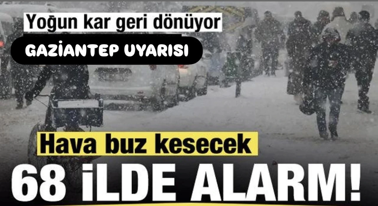 Meteoroloji Gaziantep ile 68 il için yağış ve fırtına uyarısında bulundu. Kuvvetli sağanağın akşam saatlerinde sıcaklıkların 6-7 derece birden düşmesiyle birlikte yerini bırakacağı kar yağışı, pazartesi itibarıyla yurdun büyük bölümünü etkisi altına alacak.