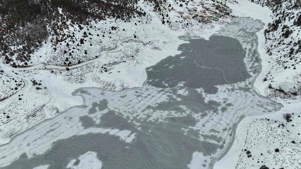 ’Adana’nın Sibiryası’ olarak adlandırılan Tufanbeyli ilçesinde hava sıcaklığı gece sıfırın altında 25 dereceye kadar düşünce Kürebeli Barajı buz tuttu.