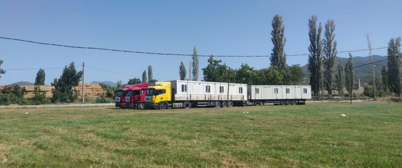 Balıkesir’in Sındırgı ilçesinde 6,1 büyüklüğündeki depremin ardından barınma ihtiyacı olabilecek vatandaşlar için AFAD tarafından getirilen konteynerler bölgeye yerleştirildi.