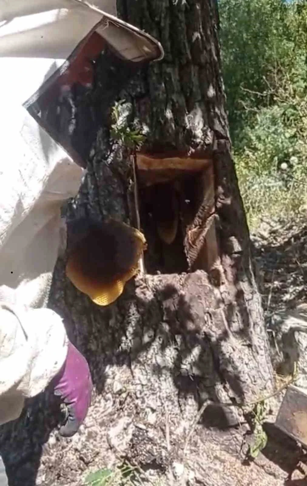 Ağaç kovuğu içerisinden kilo kilo bal çıktı