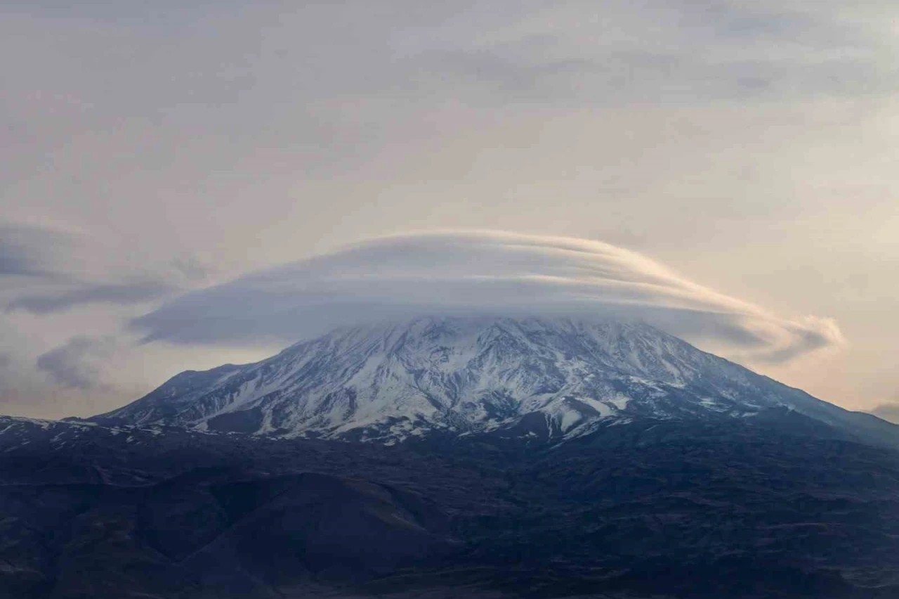 Ağrı Dağı’nda nadir görülen mercek bulutu görsel bir şölen oluşturdu.