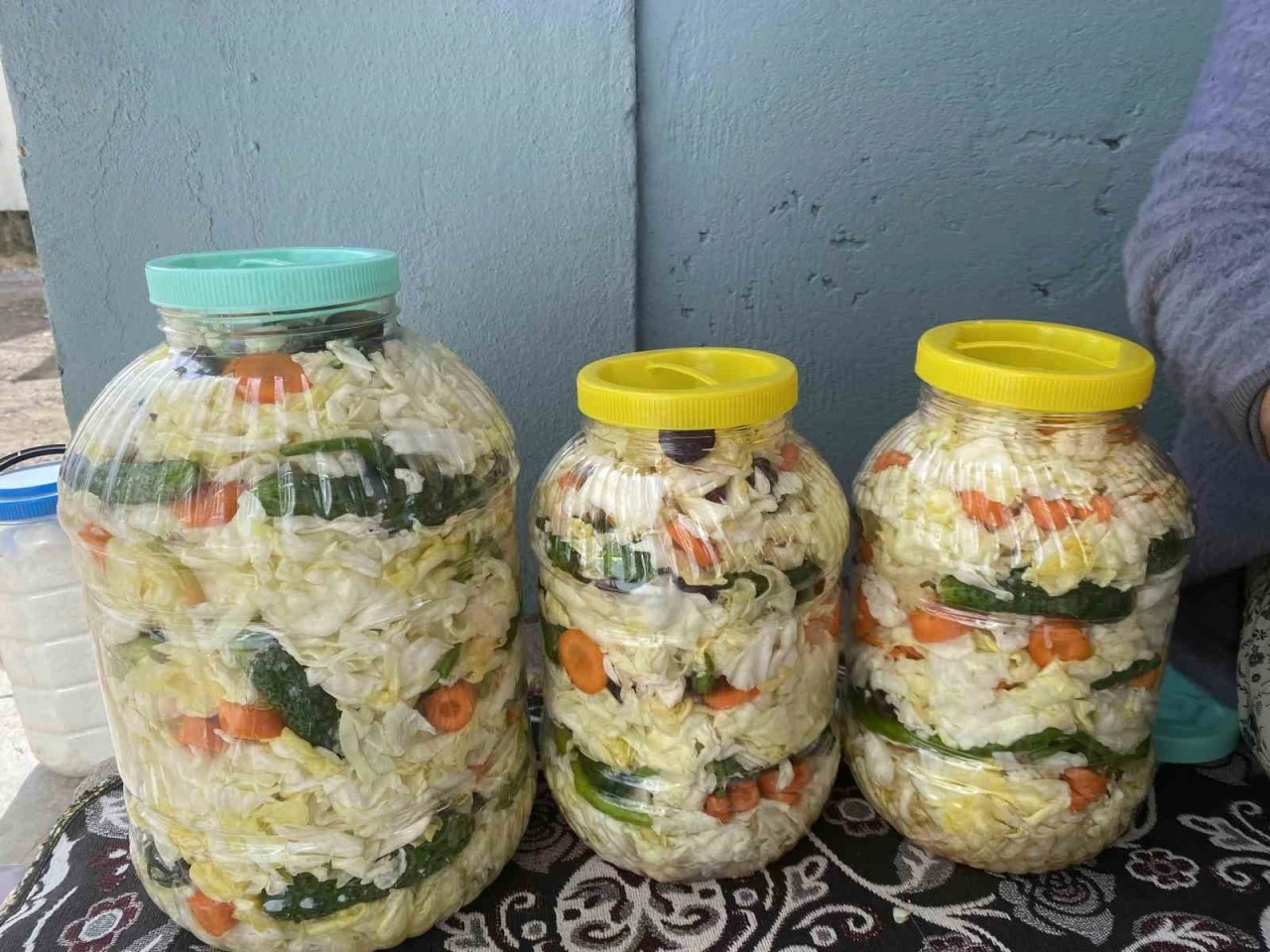 Ev hanımı Senem Yılkan, her yıl olduğu gibi bu yıl da kış mevsiminde tüketmek üzere turşu hazırladıklarını belirterek, "Kışın sofralarımızda doğal ürünler bulunsun diye lahanalarımızı getirip turşu kuruyoruz. İçine havuç, biber ve sirke ekliyoruz. Turşu hem lezzetli oluyor hem de bağışıklığı güçlendiriyor. Kış aylarında çorbanın, kuru fasulyenin yanına çok yakışıyor" dedi.