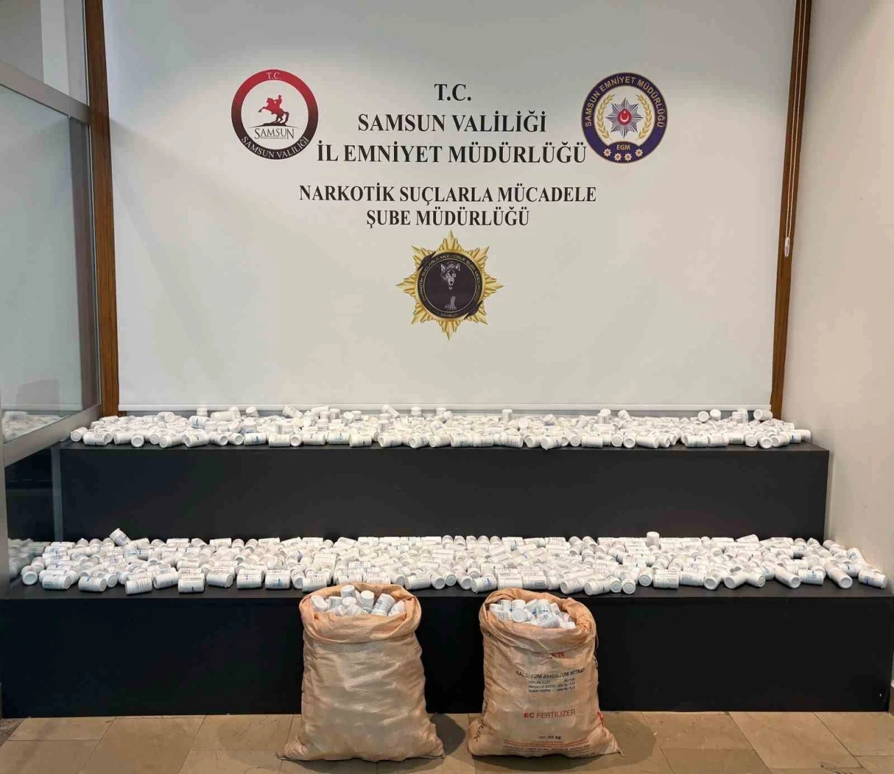 Edinilen bilgiye göre, Samsun İl Emniyet Müdürlüğü Narkotik Suçlarla Mücadele Şube Müdürlüğü ekiplerince 19 Mayıs ilçesinde düzenlenen operasyonda, uyuşturucu ticareti yaptığı tespit edilen E.A. (40) isimli şahsın ikametinde arama yapıldı. Bahçede bulunan ahırda da gerçekleştirilen aramada, arı kovanlarının arkasına saklanmış vaziyette bulunan çuvallar içerisinde yapılan incelemede 53 bin 872 adet sentetik ecza ele geçirildi. Olayla ilgili E.A. gözaltına alındı. Soruşturma devam ediyor.