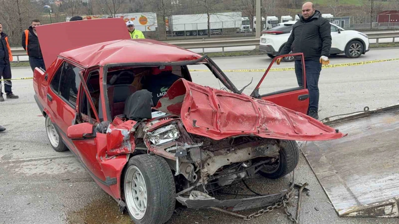 Kaza yapan otomobilin arka camında ‘Sık kafana açılırsın’ yazısı ise dikkat çekti.