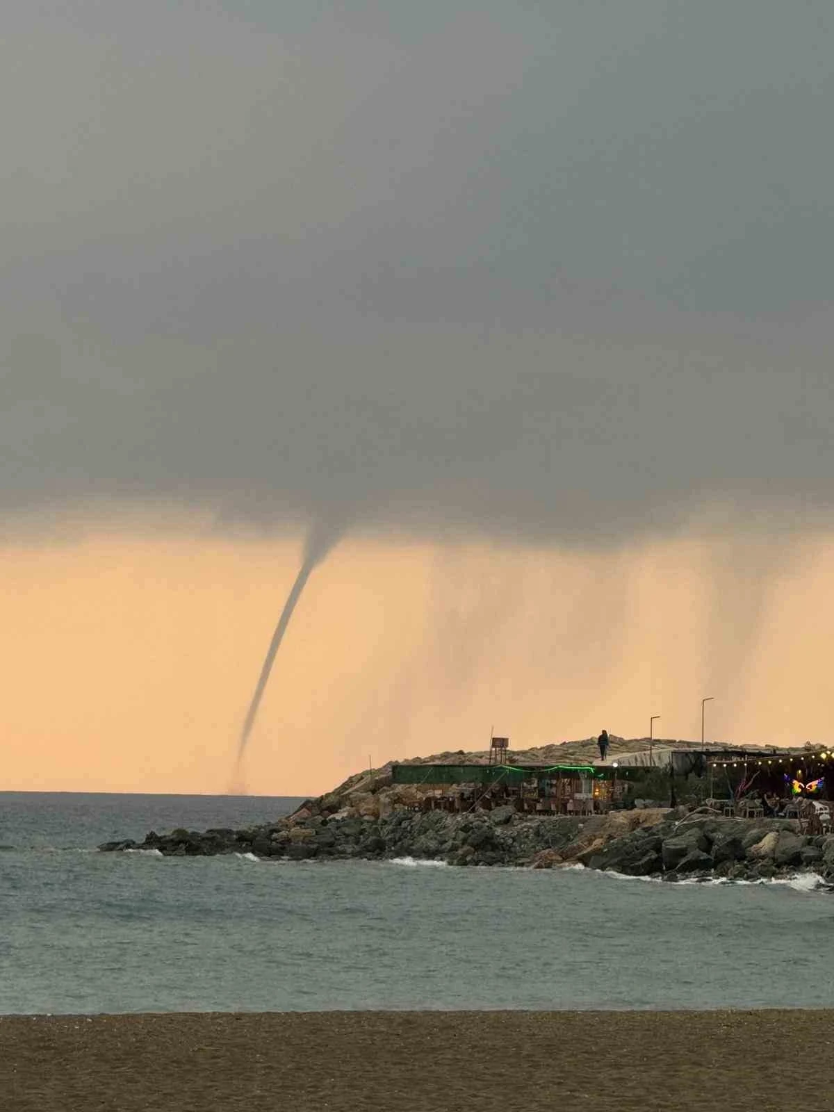Hatay'da akdeniz'in samandağ açıklarında deniz üzerinde oluşan hortum, vatandaşlar tarafından cep telefonu kamerasıyla görüntülendi.