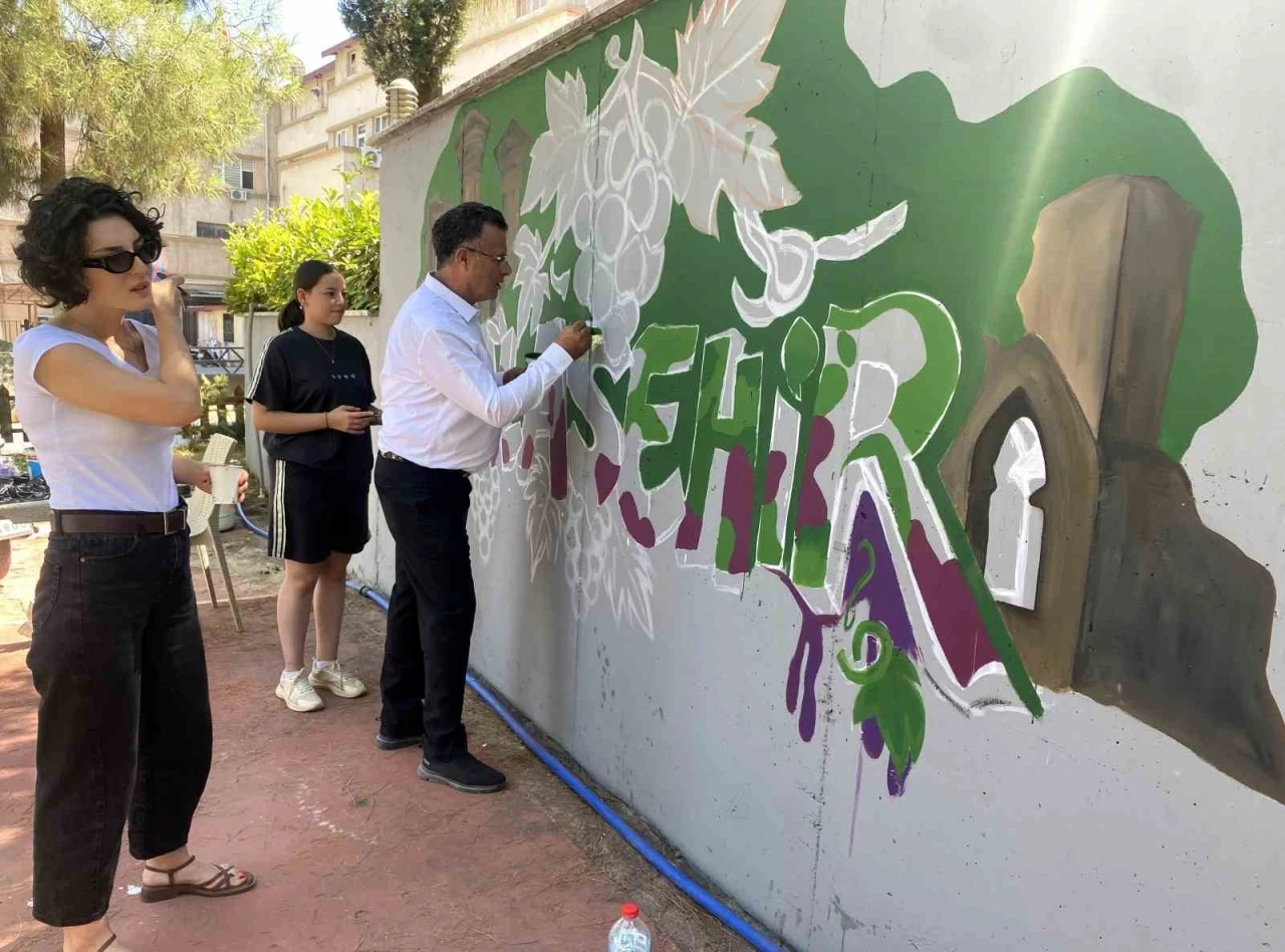 Kahramanmaraşlı Ankara Güzel Sanatlar Lisesi 12’nci sınıf öğrencisi Bengisu Polat, Alaşehir’e yaptığı ziyaret sırasında Alaşehir Kongre Parkı duvarına çizdiği resimlerle ilçenin tarihi, kültürel ve yöresel değerlerini anlattı.