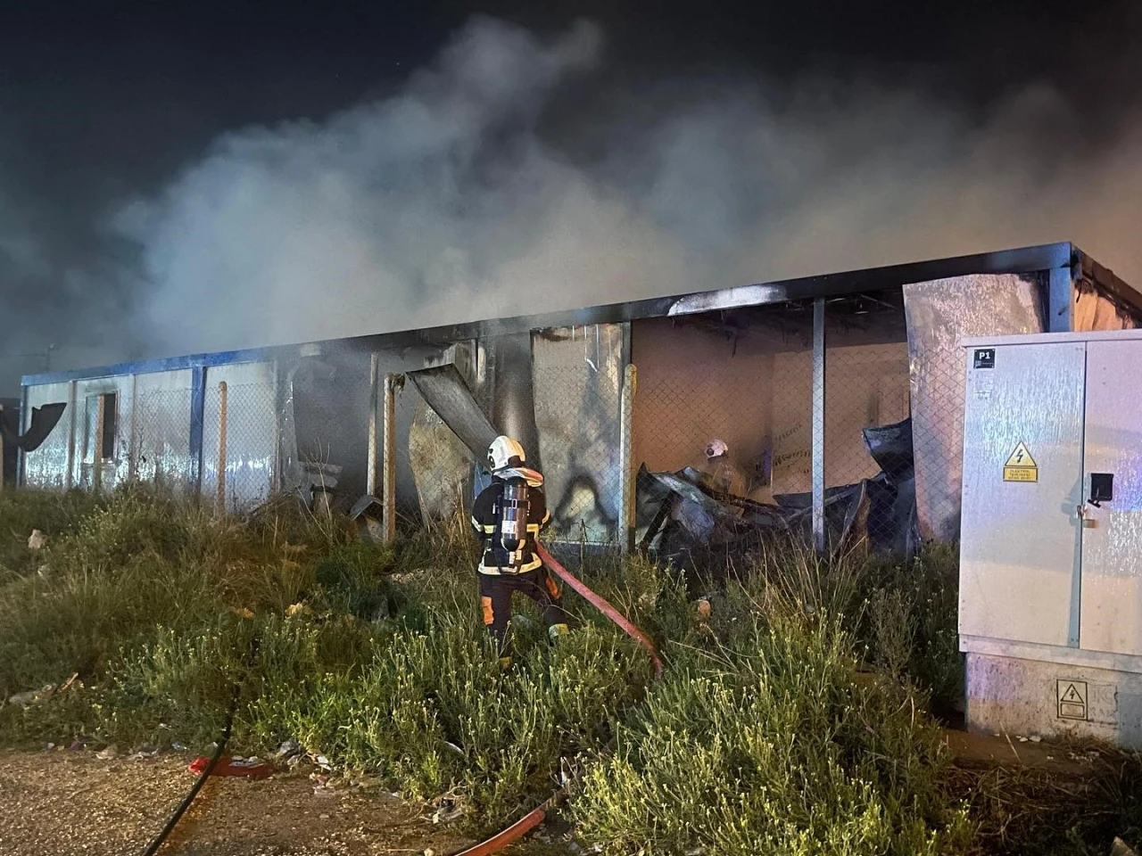 Hatay’da içerisinde yaşayan vatandaşların bir süre önce tahliye edildiği 2 konteyner alev alev yanarak kullanılmaz hale geldi.