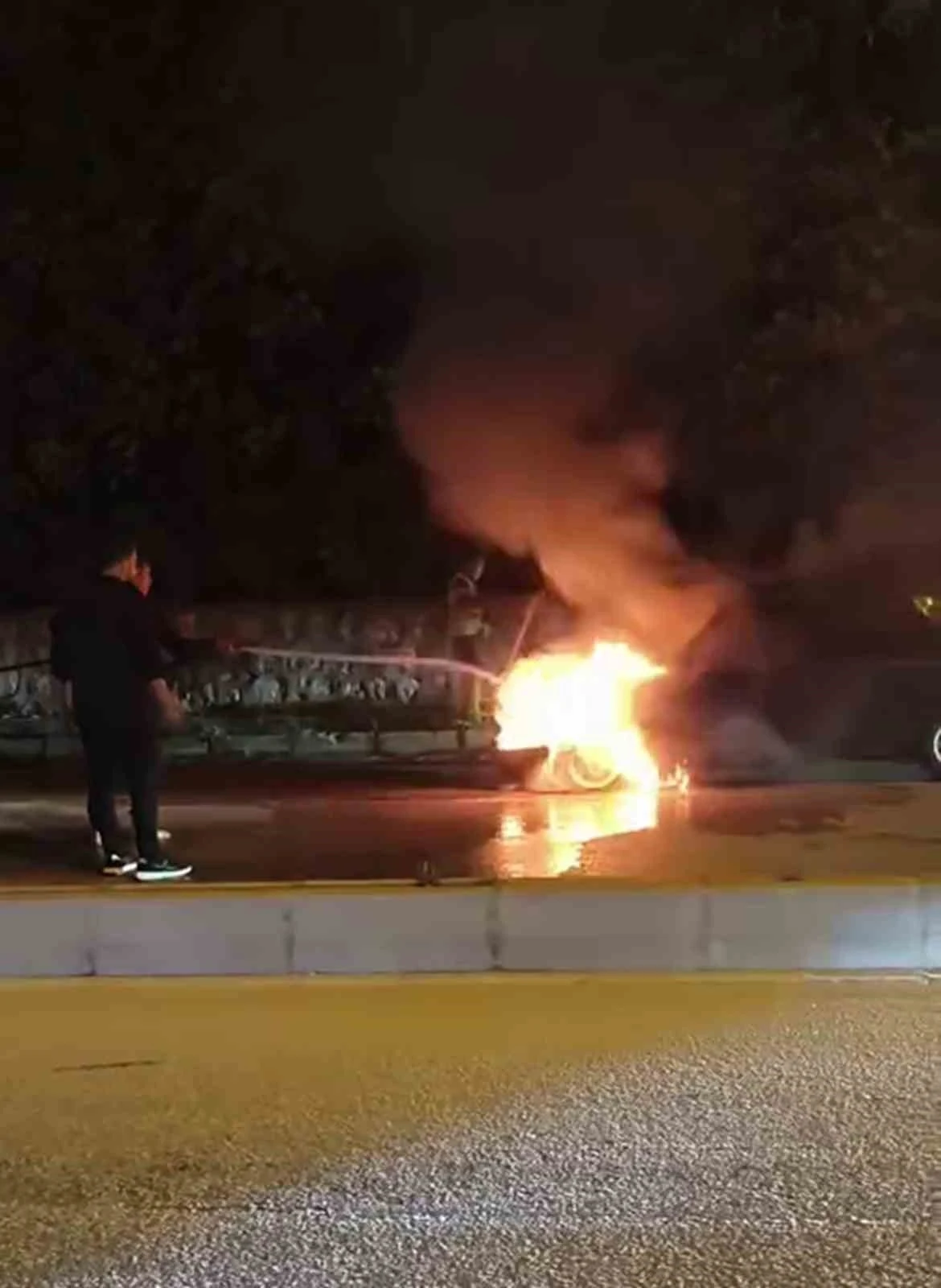 Hatay’da seyir halindeyken yanmaya başlayan Fiat Tofaş’tan yükselen alevler, mikser sürücüsünün hızlı müdahalesiyle kontrol altına alındı.