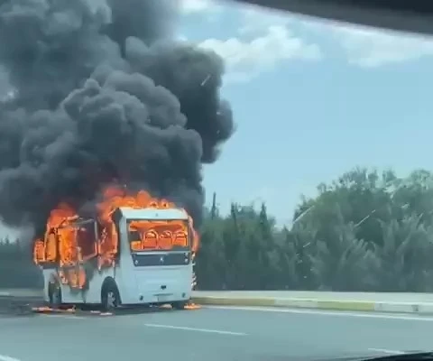 Balıkesir’in edremit ilçesi narlı mahallesi’nde seyir halindeki bir yolcu minibüsü, elektrik aksamından çıktığı değerlendirilen yangın sonucu tamamen yanarak kullanılamaz hale geldi.