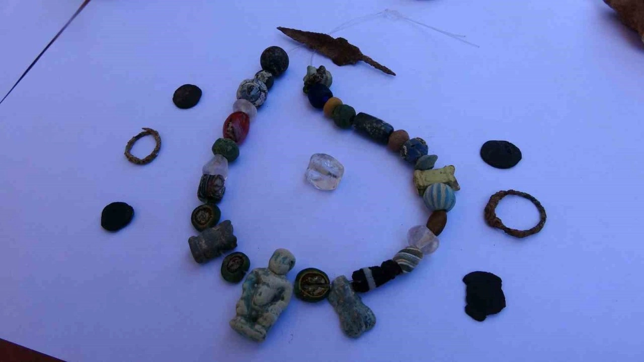 Hellenistik Döneme tarihlenen 2100 yıllık, hypoge mezarda bir adet Mısır kökenli Tanrı Pataikos tasvirli fayans amulet (nazarlık, muska) ve yanı sıra farklı amuletler ile farklı tip ve cinste boncuklar bulundu.
