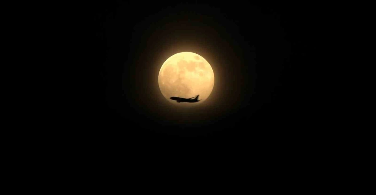 Ankara’da akşam saatlerinde Dünya’ya en yakın konuma yaklaşan Ay, normalden yaklaşık yüzde 30 daha parlak ve büyük görünerek dikkat çekti. Tam bu sırada Ankara semalarında seyreden bir yolcu uçağının Ay’ın önünden geçmesi, kartpostallık bir an ortaya çıkardı.