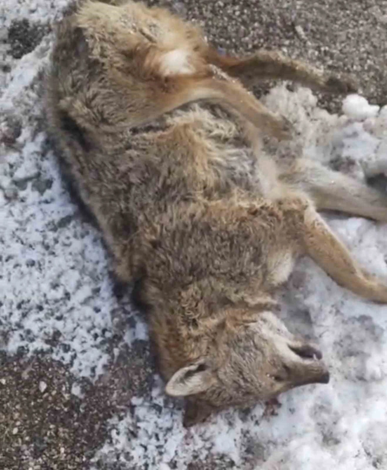 Ölen kurt araç sürücüsü tarafından yol kenarına alındı.