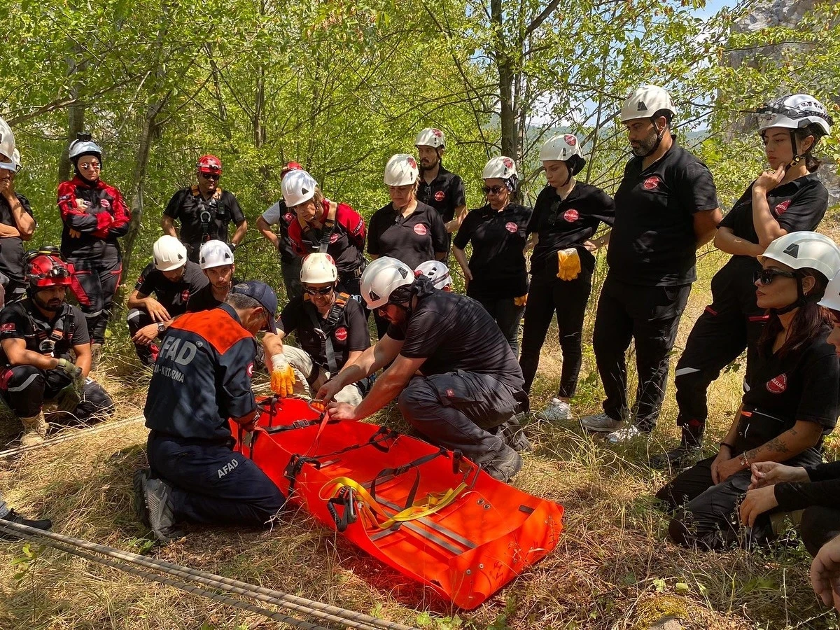 DÜZCE(İHA) – Kızılelma Arama Kurtarma ekibi, Düzce Hasanlar Barajı mevkiinde, AFAD personeli Emre Duran önderliğinde havai hat ip eğitimini uygulamalı olarak tamamladı.