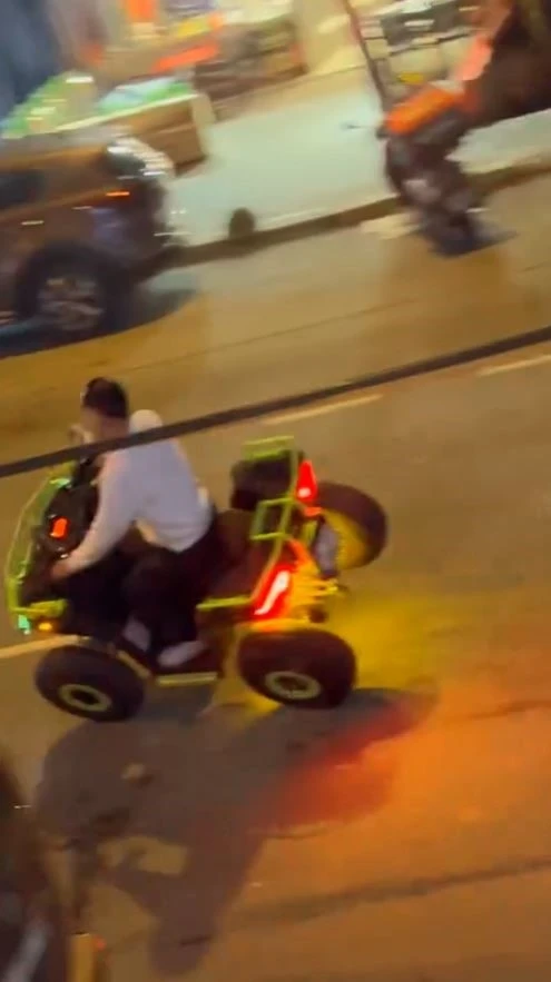 Çevredeki vatandaşlar, trafiğe açık alanda yapılan bu tehlikeli gösteriyi şaşkınlıkla izledi. Görüntülerde, ATV üzerindeki iki kişinin kontrolsüz şekilde manevra yaptığı ve cadde üzerinde diğer araçların da ilerlemeye devam ettiği görüldü.