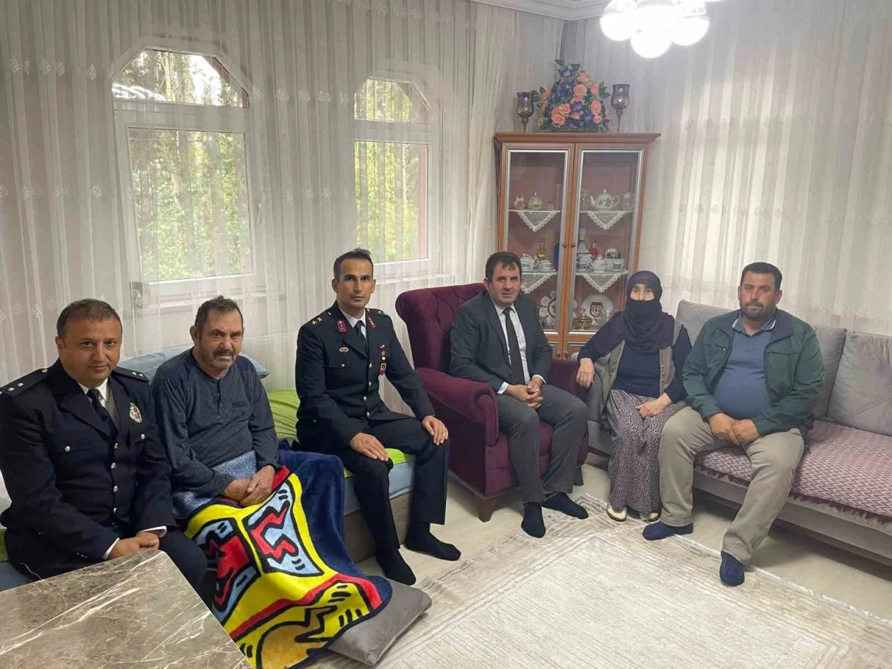 İlçe Emniyet Amiri Cengiz Avcı, İlçe Jandarma Komutanı Üsteğmen Neşat Akyüz ve Sosyal Yardımlaşma ve Dayanışma Vakfı Müdürü Özcan Altuntaş, Kıbrıs Gazisi Eşref Kabak ile Gazi Kemalettin Şahin’e ziyaret gerçekleştirerek, gazilerin günlerini kutladı.