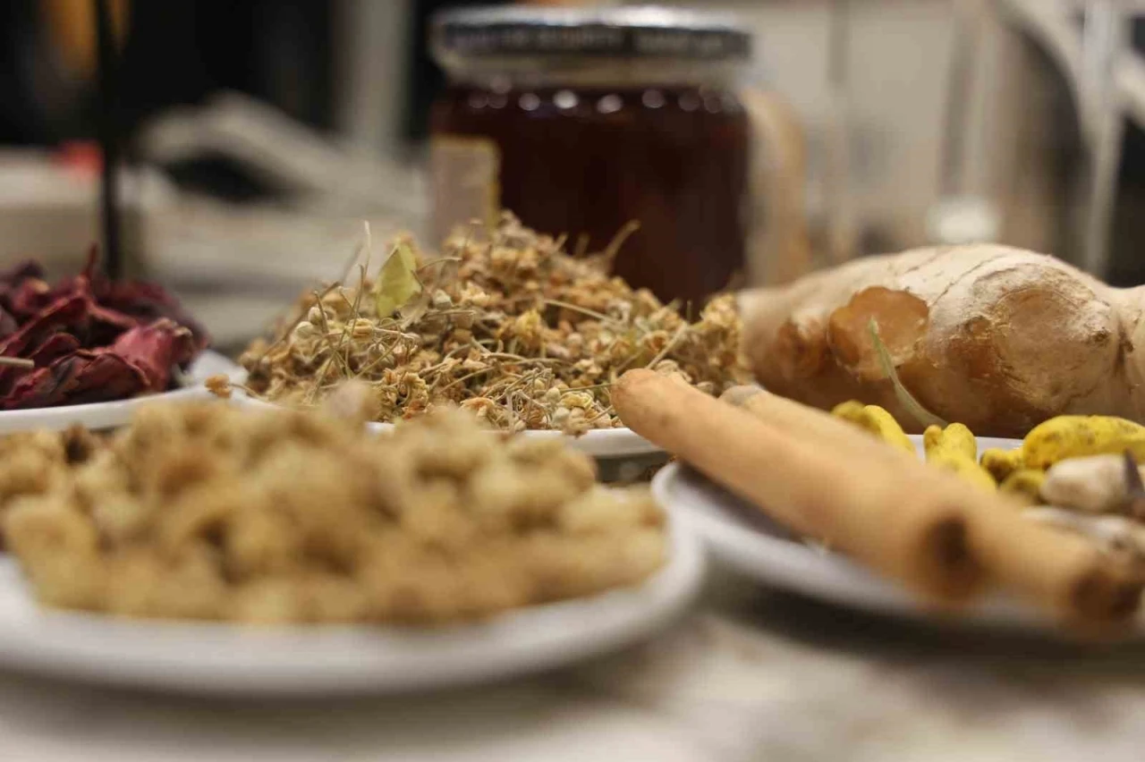 Havaların soğuması ile beraber vücut direncinin düştüğüne dikkat çeken Tıbbi ve Aromatik Bitkiler Teknikeri Şerife Akkuş, "Evlerimizde içimizi ısıtacak birkaç bitkiden bahsetmek gerekirse, özellikle çocuklarda da bu bokavirüsünden kaynaklı oluşan vücut direnci düşüklüğü, bağışıklık sistemi düşüklüğünden kaynaklı hem içi ısıtacak hem de vücut direncini arttıracak bitkiler var. Özellikle tıbbi ada çayı doğal antibiyotik olarak geçer. Boğaz enfeksiyonlarında kullanabileceğimiz harika bir çay. Tabii ki bu kış çayları arasında olmazsa olmazımız, çiçek ıhlamur, nadide bir üründür balla tatlandırıp tadı da efsane oluyor. Yanında hibiskus çiçeği narçiçeği olarak da bilinir, çok güzel bir renk verir, çocukların tadını severek içeceği bir ürün. Özellikle bu hastalıklara karşı vücut direnci düşüklüğüne, vücuttaki enfeksiyon oranı yüksekliğine, bunu düşürmek adına da beyaz dut kurusu, bu karışımın içerisinde birkaç tane dut kurusu atıp demleyip içmek faydası büyüktür. Karışımın olmazsa olmazı kök zencefil, bu taze halde var. O şekilde de tüketebiliriz ama bu çayımızın içerisine bir kök zencefil atmamız yeterli olur. Zerdeçal kökümüz ve çubuk tarçınımız, bunu da ortadan kırıp bir adet ekleyebiliriz. 3-4 tane anti-mikrobiyal özelliği olduğu için karanfil tanesinden atabiliriz" dedi. "Bağışıklık sistemine de bir kalkan oluşur"