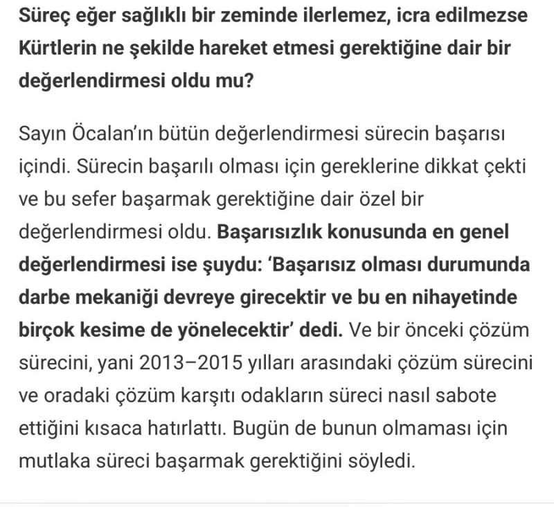 • “Öcalan’ın ‘darbe’ sözlerini tartışmaya açan, İmralı heyetindeki DEM’li Gülistan Koçyiğit’tir.”