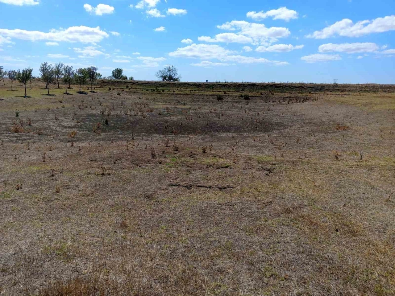 Tekirdağ’ın Muratlı ilçesi Ballıhoca Mahallesi’nde bulunan sulama göleti, kuraklık ve yüksek sıcaklıklar sebebiyle tamamen kurudu.