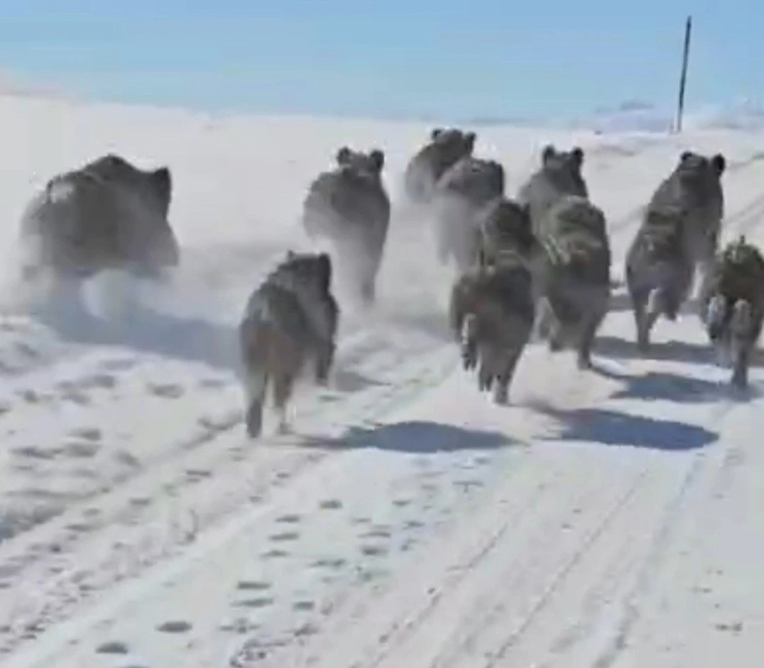 Van’ın başkale ilçesinde sürü halinde yerleşim yerlerine kadar inen yaban domuzları görüntülendi.
