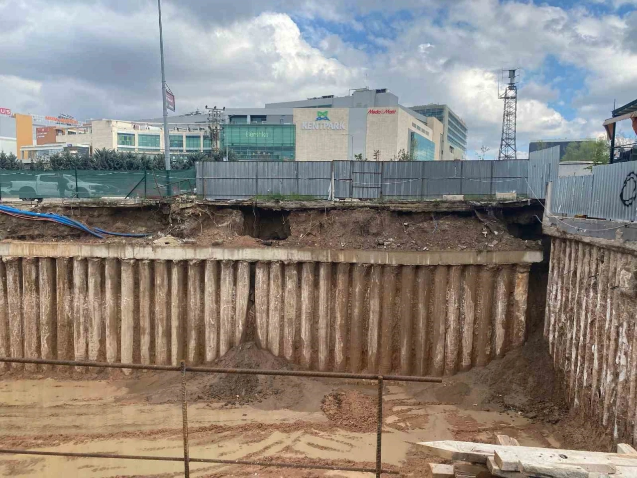 Ankara’nın Çankaya ilçesinde etkili olan yağmurun ardından inşaat alanında meydana gelen göçük mahalleliyi korkuttu.