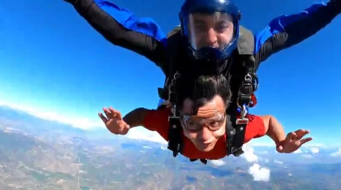 Bedensel ve görme engelli sporcudan nefes kesen paraşüt atlayışı
