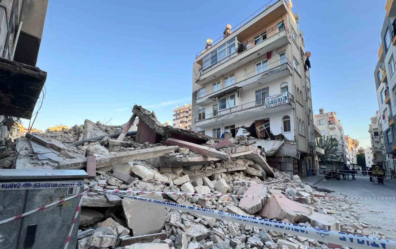 Mersin’de eski bir binanın yıkımı sırasında bitişik binanın birinci katı zarar gördü. Bina sakinleri, tedbir amaçlı tahliye edildi.