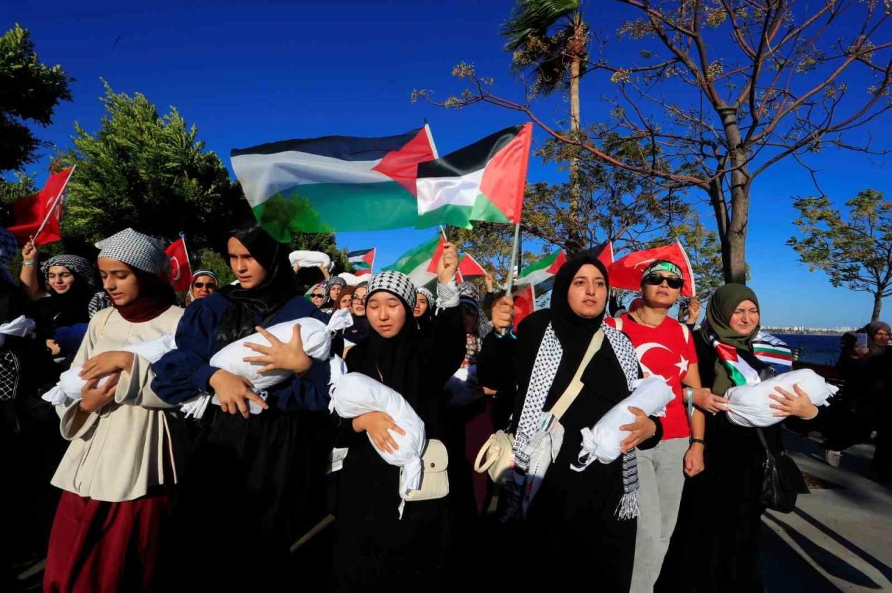 Antalya Kudüs Platformu’nun çağrısı ile Gazze’de yaşanan katliama dikkat çekmek amacıyla yürüyüş düzenlendi. Ellerinde Türkiye ve Filistin bayrakları bulunan binlerce kişi, Konyaaltı Olbia meydanında toplandı. Yürüyüşe karadan motosiklet gruplarının yanı sıra denizden de tekneler eşlik etti. Ellerinde Gazze’de hayatını kaybeden bebek ve çocukları temsil eden kefene sarılmış bebek figürleri bulunan grup üyeleri, ‘Antalya’dan Gazze’ye direnişe bin selam’ ve ‘Çocuklar ölürken sessiz kalınmaz’ sloganları attı. Konyaaltı Kent Meydanı’na kadar olan yaklaşık 2 kilometrelik yürüyüşe katılanlara çevredeki vatandaşlar da destek verdi. "İnsanlık onurunu hiçe sayan bir soykırım yaşanıyor"
