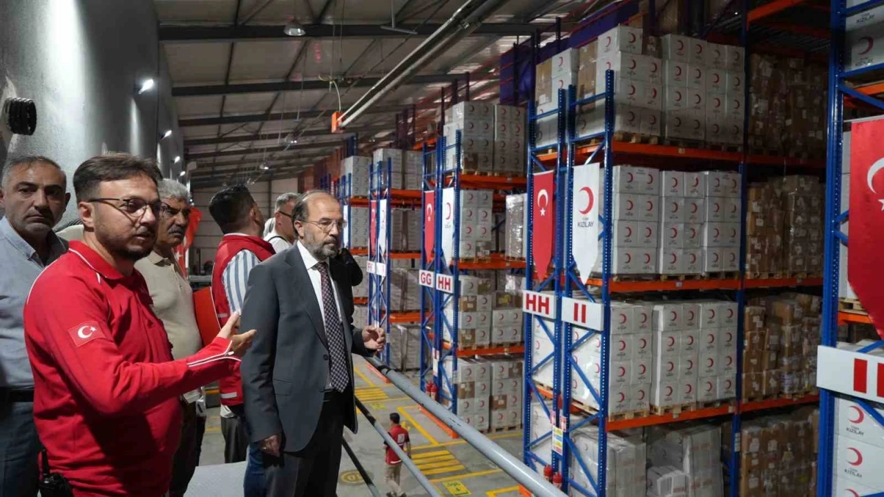 Erzurum Bölge Afet ve Lojistik Merkezi’nde Gazze ve Filistin’e gönderilmek üzere binlerce ton gıda maddesi hazır edildi.