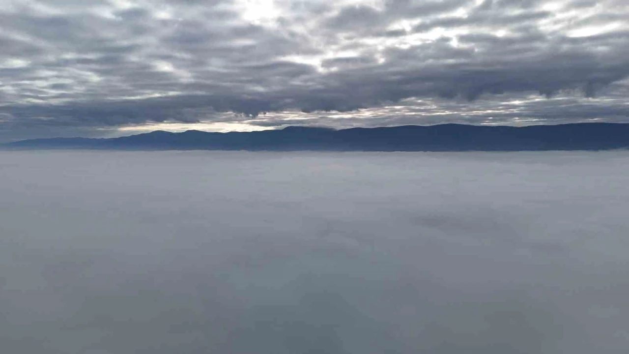 Bolu’da sabah saatlerinden itibaren etkili olan sis tabakası havadan dronla görüntülendi. Bolu’da sabah saatlerinden itibaren kent genelinde sis etkili oluyor. Kentin üzerine çöken sis tabakası havadan dronla görüntülendi. Dronla kaydedilen görüntülerde, dağların altında kalan ve şehrin üzerine çöken sis tabakası güzel görüntüler oluştu.