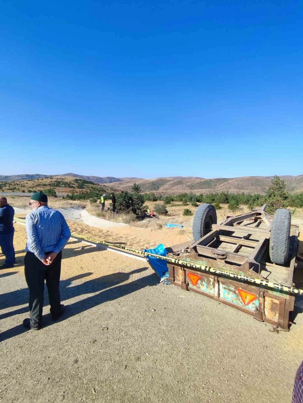 Sivas´ta buğday yüklü traktör devrildi, kazada 2 kişi hayatını kaybetti.