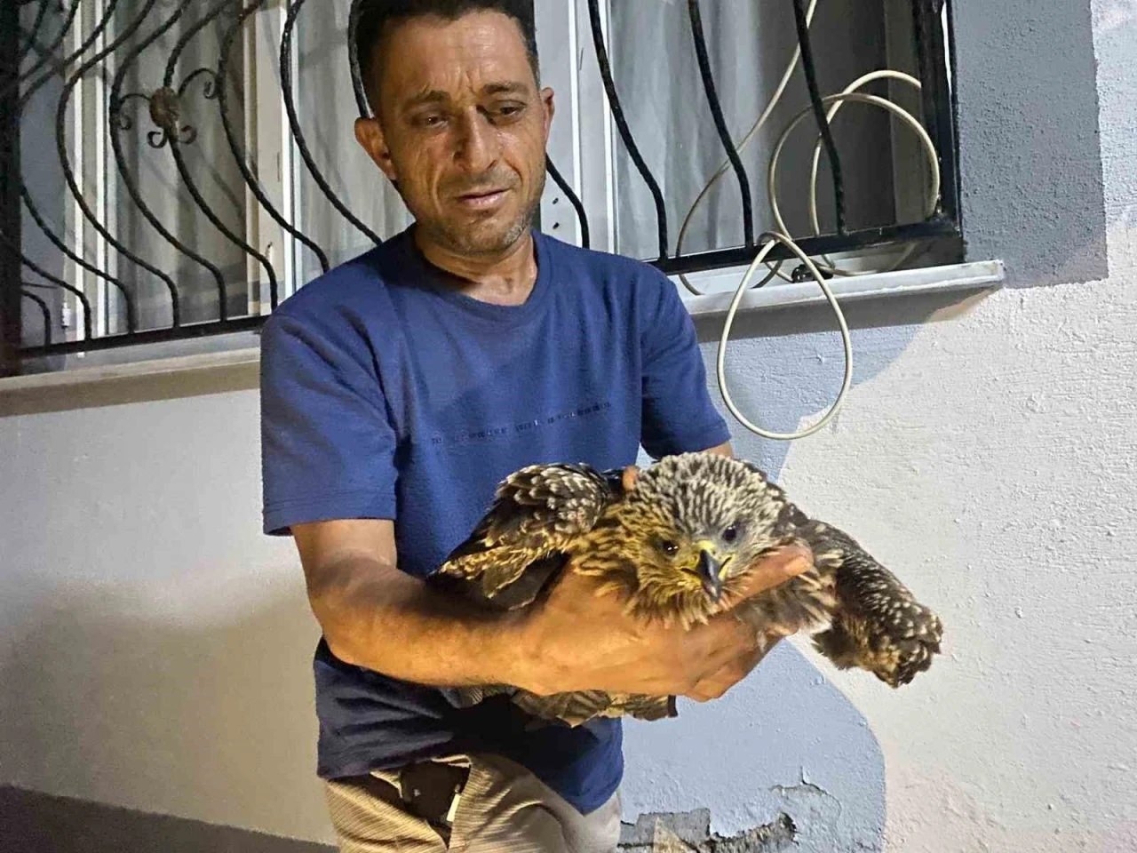 Osmaniye’nin Düziçi ilçesinde incir toplarken kanalın içinde bitkin halde bulduğu şahini kurtaran çiftçi Ali Kötüğ, açlıktan halsiz kalan kuşa ciğer dürümü söyledi.