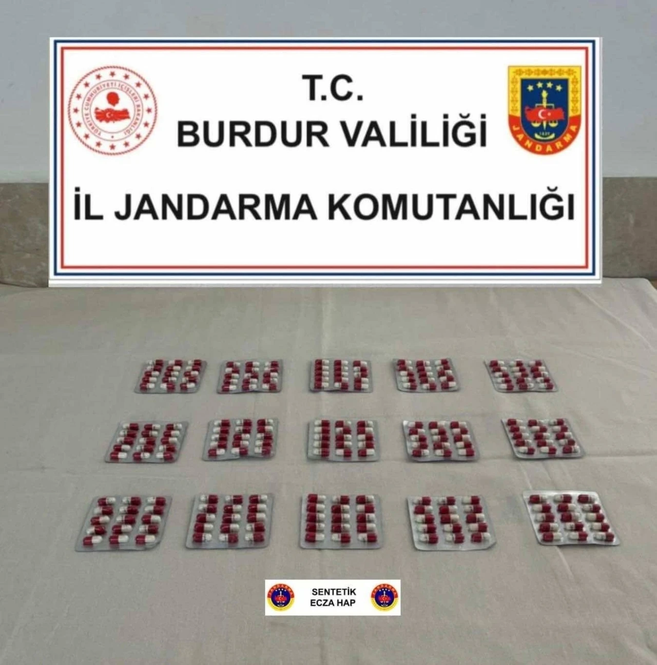 Burdur’da jandarma ekipleri tarafından düzenlenen operasyonda 225 adet sentetik ecza hap ele geçirilirken bir şüpheli çıkarıldığı mahkemece tutuklanarak cezaevine gönderildi.