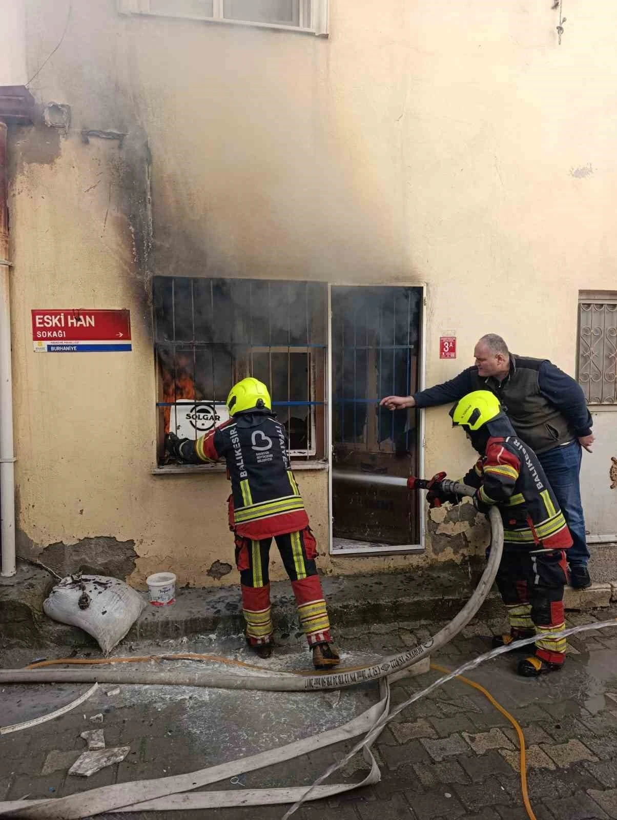 Burhaniye ilçesinde, baharatçı dükkanında çıkan yangını itfaiye söndürdü. Yangın, Mahkeme Mahallesi Nine Hatun Caddesi No.6 adresinde meydana geldi.